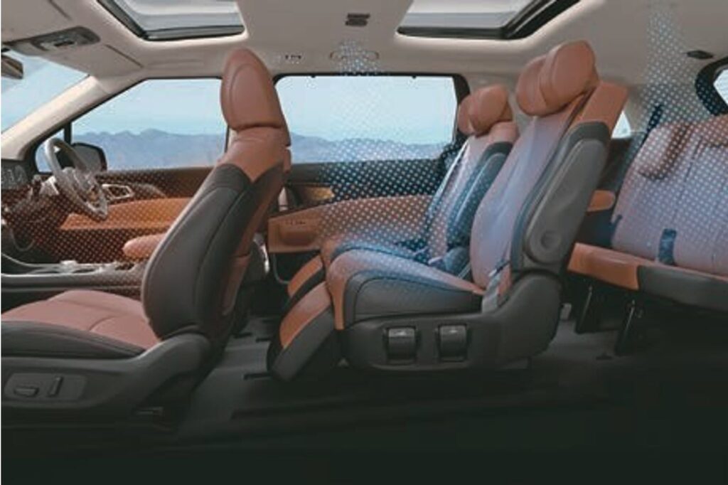 Inside, the car it offers a very premium cabin with 7-seater (2+2+3) layout. The second row has Ottoman seats that are powered, ventilated, and heated with leg support for extra comfort.